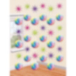 6 stk. hengende dekorasjoner i flott Discotema. Kule at ha i rummet når det er tid for discobursdagen. Dekorationerna er ca 2,1 m lange.