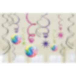 Flotte hengende dekorasjoner med discotema. Gør ditt party komplett med disse og det kommer kennas att du og dine gjester har åkt tillbaka til 70-talet. Låt festen børja! Inneholder 6 dekorasjoner 3 stk er ca 17,7 cm lange 3 stk er ca 10,1 cm lange.