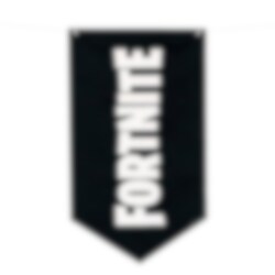 Hengende dekorasjon som viser et svart skilt med motiver av Fortnite-logoen. En kul ting å dekorere rommet med når det er tid for Fortnite-fest. Dekorasjonen er laget av papir og er ca. 52 x 30 cm stor.
