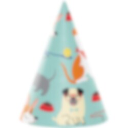 8 stk. mintgrønne festhatter med motiv av ulike hunder. Et fint tilbehør å ha med til festen med hundetema. Hattene er laget av papp og er ca. 10 cm høye. Festes på plass med et elastisk snøre.