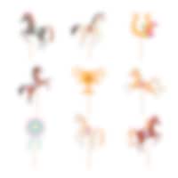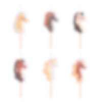 Disse herlige cake toppers med hestetema passer perfekt til kaker, muffins eller småretter. Settet inneholder alt fra hester i galopp til hestesko, rosetter og pokaler – ideelt for en søt og morsom avslutning på et hestekalas. Dekorasjonene er ca. 11 cm høye og laget av tre og papir.