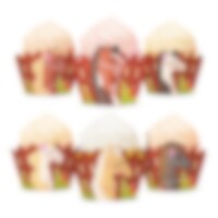 Gjør muffinsene ekstra fine med disse søte omslagene med hestemotiv. De ser ut som små gjerder med fargerike hester – perfekte til bursdag med hestetema. Omslagene er 7,5 cm brede og ca. 5 cm høye, og settes enkelt rundt ferdigstekte muffins.