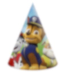 6 stk. moro festhatter med motiver av Marshall, Chase og Rubble fra Paw Patrol. Hattene er ca 19 cm høye og holdes på plass med en strikk.
