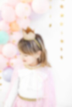 Prinsessekrone som glitrer i en flott gullfarge. Et herlig tilbehør å ha på seg til en fest med prinsessetema. Kronen er ca. 8,5 cm i diameter.