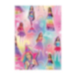 Vakkert og fargerikt gavepapir med Barbie-motiv. Pakken inkluderer 2 stk. gavepapirark som er 50 x 70 cm store og 2 stk. etiketter.