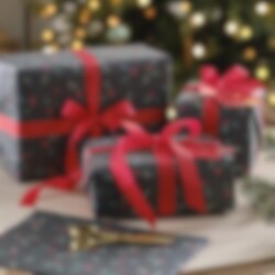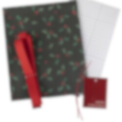 Pakk inn gavene og julegavene dine i dette fine gavepapiret med motiv av kristtorn og et fint gavebånd og tilhørende Merry Christmas effekter.