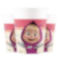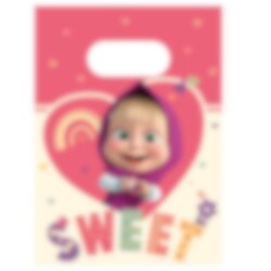 4 stk. godteposer av papir med et søtt motiv av Masha foran et stort hjerte, dekorert med små hjerter, regnbuer og fargerike detaljer. Perfekte å fylle med godteri, små leker eller morsomme overraskelser som barna kan ta med seg hjem fra bursdagen.