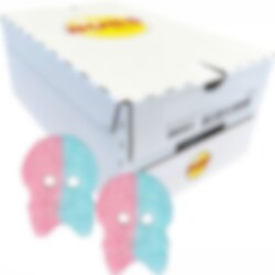 Sukkerbelagte hodeskaller med bubblegum smak. Selges i en storpakning med vekt på 2,6 kg.