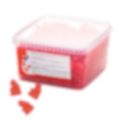 Ingredienser: Sukker, glukosesirup, vann, gelatin (svin), maisstivelse, syre (E270), aroma, vegetabilske oljer (kokos, palme), overflatebehandlingsmiddel (E903), fargestoffer (E120, E160a).