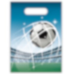 6 stk. godteposer i plast med kult fotballmotiv. Fyll posene med søtsaker og en morsom overraskelse, og del de ut til alle vennene dine på festen med et morsomt fotball-tema.