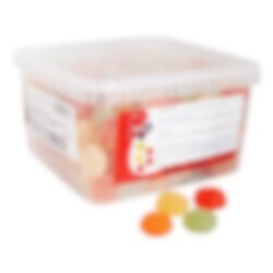 Gelégodteri med syrlig fruktsmak og utseende av skjell. Vekt 2,28 kilo.
