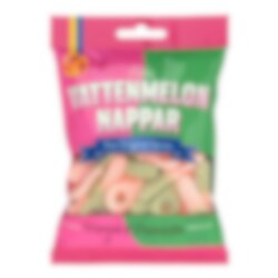 Ingredienser: sukker, glukosesirup, hvetestivelse (gluten), vann, modifisert maisstivelse, syrer: E270, E296, E330, E350; modifisert potetstivelse, smakstilsetning, matfargestoff (spirulina og saflorkonsentrat), svart/sort gulrotjuicekonsentrat.
