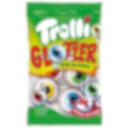 Trolli Pop Eyes er en morsom og skummel godteri i form av øyne i skumgelé, perfekt for Halloween. De har en god fruktsmak og syrlig fylling, 75 gram.