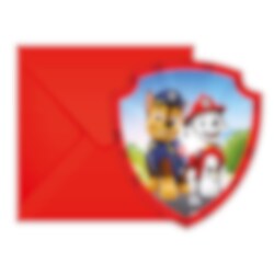 Invitér til en morsom bursdag med disse formede Paw Patrol-invitasjonene med motiv av Chase og Marshall. Perfekt for barn som liker hundeheltene og vil samle venner til en spennende feiring. Pakken inneholder også seks røde konvolutter.
