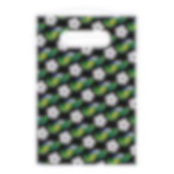 8 stk svarte godteposer av papir med kule motiver av fotballer og grønne fotballsko. Fyll posene med lekkert godteri og morsomme leker, og gi de til vennene under bursdagen.