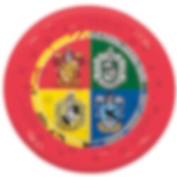 Gi bursdagen et magisk preg med disse fargerike plasttallerkenene med Harry Potter. Motivet viser de fire husene Gryffindor, Slytherin, Hufflepuff og Ravenclaw i tydelige felt og omkranset av en rød kant som gir et dekorativt uttrykk.