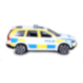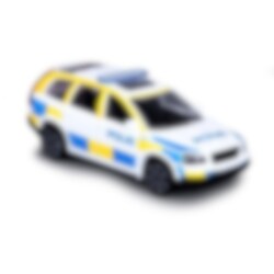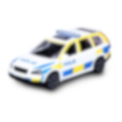 En fin svensk politibil i metall som er 10,5 cm lang og 3,5 cm høy.