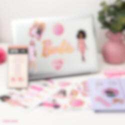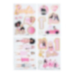 22 stk. vanntette klistremerker med Barbie-motiv, fordelt på 4 ark. Perfekt for å dekorere tingene dine med en touch av Barbie-magi.