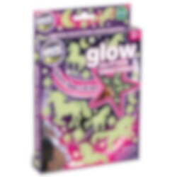 Brainstorm Glow Glitter Enhjørninger er en glitrende og magisk dekorasjon som forvandler rommet ditt. Setet inneholder 6 fine enhjørninger og 43 høykvalitets stjerner og måner. Når du slukker lampene, skaper de selvlysende figurene et fantastisk skuespill på veggene dine, i taket eller på tingene dine. Størrelsene varierer fra 2 til 13 cm, og pakken inkluderer selvklebende 'Glue Dots'. Passer barn fra 3 år og oppover.