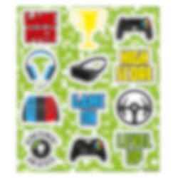 12 stk. klistremerker med forskjellige gaming motiv. En morsom ting til godteposen eller partyboksen når det er tid for fest med spille-tema.