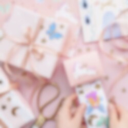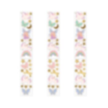 23 stk. klistremerker med fine enhjørningsmotiver i 12 forskjellige utførelser. Klistremerkene sitter på en praktisk rull som er 126 cm lang.