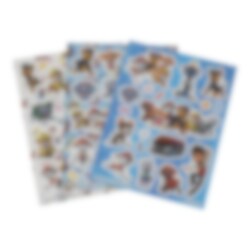 Pakke med over 40 stk. vindusklistremerker som er delt på 4 forskjellige ark og en bakgrunn med Paw Patrol-tema. Lag din helt egen Paw Patrol-scene med disse på vinduet.