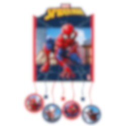 En fin enkel pinata med motiv av den kule karakteren Spiderman. Fyll pinataen med forskjellig godteri og små leker. Denne pinataen har snorer og åpnes ved at man drar i riktig snor slik at alle overraskelsene faller ut. Pinataen selges uten innhold og er ca. 21 x 27 cm stor.