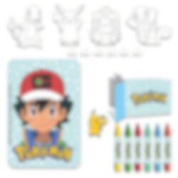 Pokémon malesett i 24 deler er et kreativt og underholdende sett for alle små Pokémon-fans. Hvert sett inneholder 6 fargestifter, 6 pappfigurer å male, 6 klistremerker av Pikachu og 6 notatbøker.