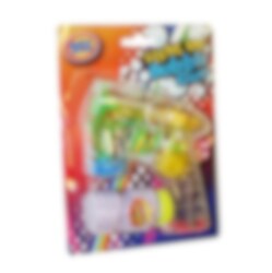 En kul vannpistol som lett blir høydepunktet på enhver utendørs fest og lek. Last pistolen med 3 stk. AAA-batterier og så er det bare å kjøre på til batteriene går tomme. Hvem har lyst på vannkrig? Pakken inkluderer også en tube med såpe, og pistolen er ca. 11 x 11 cm stor og egnet for barn fra 5 år. Batterier ikke inkludert.