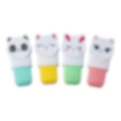 4 stk. highlighter-penner i fine pastellfarger med motiver av søte katter og en panda på lokkene. Morsomt å fylle godteposen med før festen med dyretema.