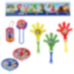 48 stk. småleker med motiver fra den populære spillserien Super Mario. Perfekte til godteposene eller partyboksene på din bursdag. Forpakningen inneholder snurrebasser, discshooters, linjaler, dog tag nøkkelringer og mini klappere.
