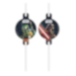 4 stk pappsugerør med fine motiver fra Star Wars. Sugerørene er ca. 21 cm lange, og motivene er ca. 6,5 cm i diameter.