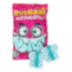 Ingredienser: Sukker, glukose-fruktosesirup, vann, geleringsmiddel: matgelatin, aromaer, farge: E133; maisstivelse