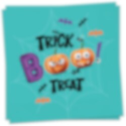 20 stk. servietter i en fin turkis farge med stilige halloween-motiv og teksten "Trick or Treat". Serviettene har tre lag og er 33 x 33 cm store utbrettet.