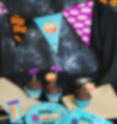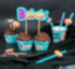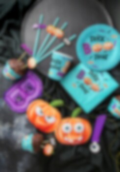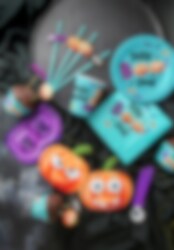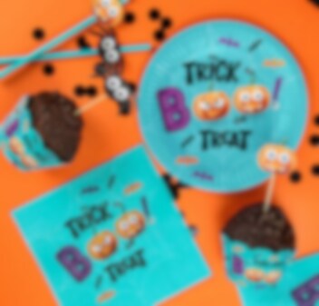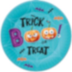 6 stk. turkise papptallerkener med stilige motiver som passer perfekt til halloweenfesten. Tallerkenene er 18 cm i diameter.