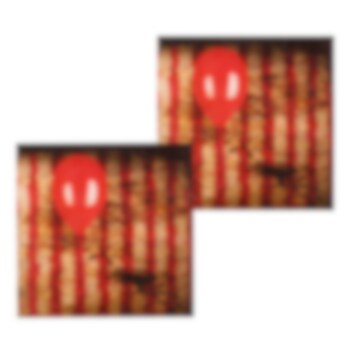 12 stk. fine servietter med et hyggelig motiv av en rød ballong med øyne foran en blodig bakgrunn. Serviettene har to lag og er ca. 33 x 33 cm store brettet ut.