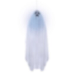 Stilig spøkelse som lyser i hodet når dekorasjonen aktiveres. En festlig sak å ha på halloweenfesten. Spøkelset er 90 cm høyt og kommer med innebygde batterier.