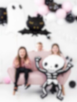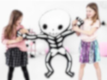 Folieballong som forestiller et hvitt og svart dansende skjelett. En kul dekorasjon til fest eller Halloweenfest. Ballongen er ca. 84 x 100 cm når det er oppblåst, og kan blåses opp med luft eller helium.