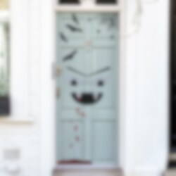 Velkommen trick-or-treaters til ditt hus med våre Halloween dørdekorasjoner. Dette settet inneholder 2 ark med dørklistremerker med vampyransikter, flaggermus, edderkopper med nett og bloddråper.