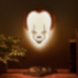 Denne skremmende og fascinerende "Pennywise Mask Lampe" fra filmen "It" er et perfekt tillegg for fans av skrekkgenren. Lampen er 22 cm høy og kan drives enten med den medfølgende USB-kabelen eller med 3 stk. AAA batterier (som ikke er inkludert).