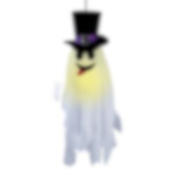 Stilig løsende spøkelse med en svart flosshatt som er en fancy dekorasjon å ta frem når det nærmer seg Halloween. Spøkelset er 50 cm høyt og har innebygget batteri.