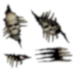 4 stk. veggklistremerker med skumle skjelettmotiver som gir en illusjon av at de prøver å komme seg ut av veggen. Perfekt for å skape en skremmende atmosfære til Halloween!
