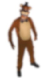 Five Nights at Freddy's kostyme består av en jumpsuit i tynt fleece materiale i Freddy's farger, et par enkle votter og en ansiktsmaske laget av plast holdt på plass med et bånd. Morsom kostyme av en populær karakter fra Scott Cawthons suksessspill. Sko er ikke inkludert. Dette er et offisielt lisensiert produkt.