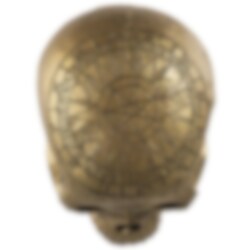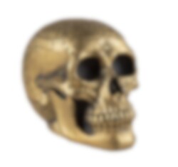 Denne skremmende hodeskallen i gull måler 20 cm og blir et skummelt innslag under Halloween. Med sin skinnende gylne finish og detaljerte design, skaper den en skremmende atmosfære. Plasser den på bordet eller hyllen for å gi hjemmet ditt en autentisk Halloween-følelse.