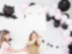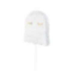 Pinata som forestillet et søtt spøkelse, med gullfolierte øyne. En perfekt avslutning på Haloweenfesten. Fyll pinataen med godteri eller noen andre gode overraskelser, og la barna dra i snørene eller slå i stykker pinataen for å tømme innholdet. Spøkelset er ca. 41,5 x 50 x 10 cm stor og selges tom.