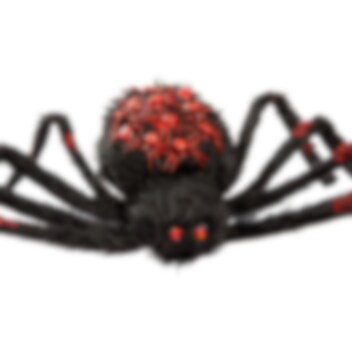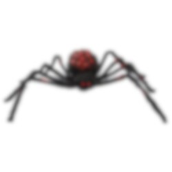 Skap ekte Halloween-stemning med denne store og skumle edderkoppen! Den svarte kroppen er dekket av små røde edderkopper, og de lange, bøyelige beina gjør den enkel å plassere på gulv, møbler eller henge i taket. En skremmende kul detalj til feiringen!