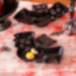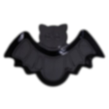 Server snacks eller godteri på en stemningsfull måte til halloween med dette flaggermusformede fatet i svart plast. Perfekt til småkaker, bær eller søtsaker på buffetbordet. Kan gjenbrukes år etter år som en dekorativ detalj på bordet.