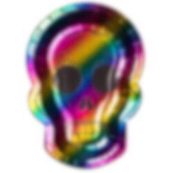 8 stk. stilige tallerkener som er formet som dødninghoder i skinnende farger. Tallerkenene er laget av papp og er 23 x 16 cm store.