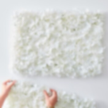 Vakker blomstervegg fra temaet Gold Wedding. Skap en vakker bakgrunn til fotoveggen eller æresbordet med denne blomsterveggen. Blomsterveggen er 63 x 45 cm stor, og du kan sette sammen flere av dem avhengig av størrelsen du ønsker på blomsterveggen.