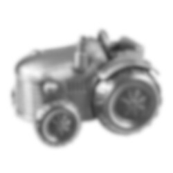 Fortinnet sparebøsse som forestiller en traktor. En kul dåpsgave å gi til barnet som skal døpes. 12 x 9 cm.